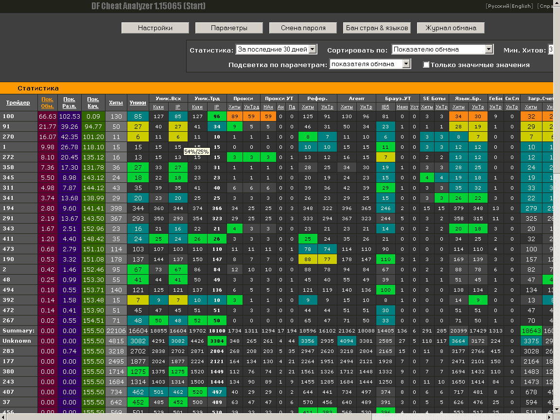 DF™ Cheat Analyzer — система предназначенная для выявления «накрутки» веб-трафика и оценки качества трафика поступающего на ваш сайт от разных участников трейда.